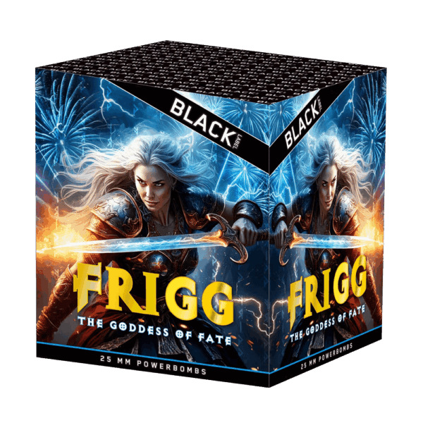 Frigg batteriet er et flot 25 skuds batteri fra Black Label serien. Den skaber de her palmetræs effekter med et knald og så lange flotte blade af farver der spredes på himlen.
